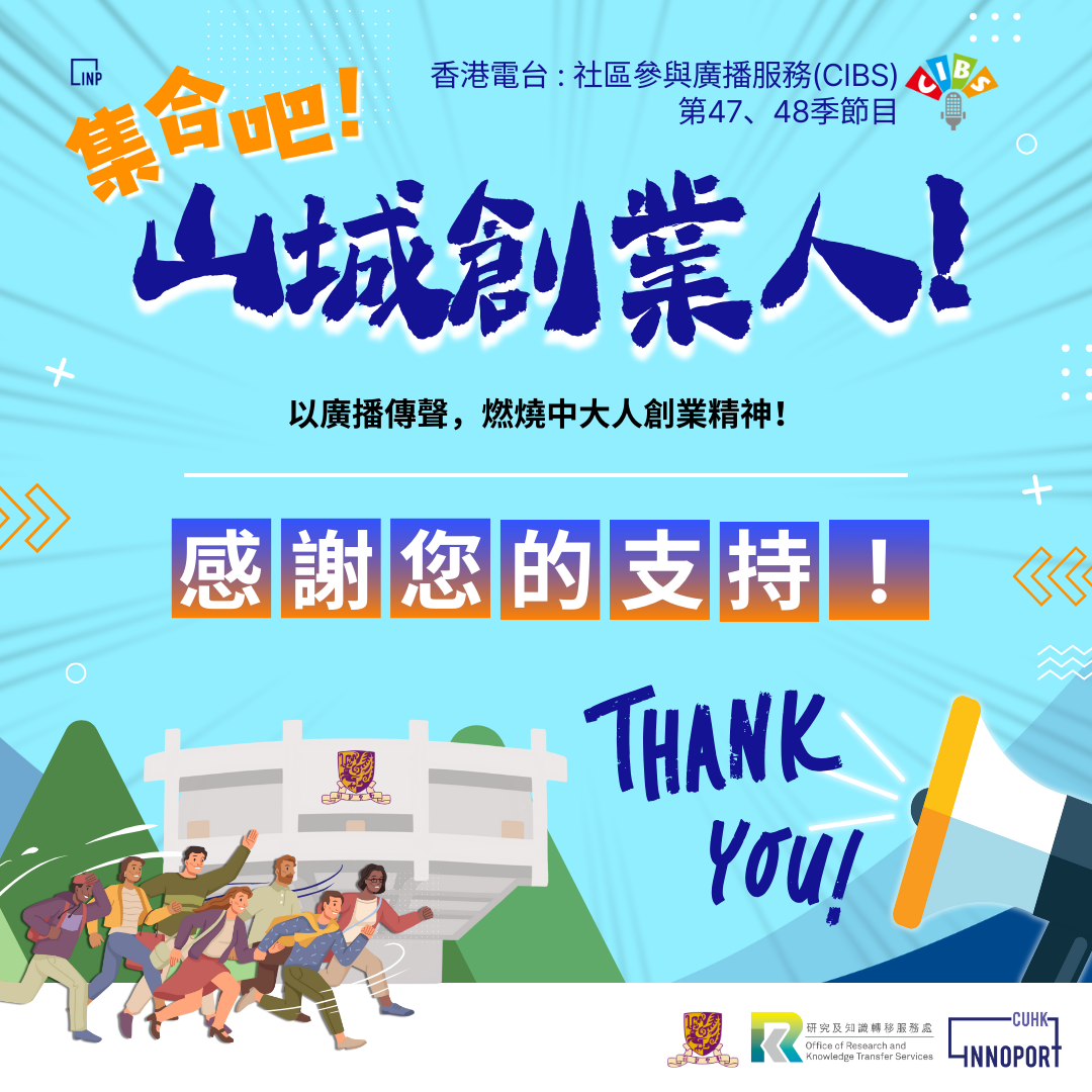 The public voting for the 47th and 48th Quarters of the "#RTHK Community Involvement Broadcasting Service #CIBS" project ended on July 7! Thank you for your support and votes! We hope to bring you the broadcasting program 《集合吧!山城創業人》 in 2024, sharing the CUHKers entrepreneurial stories!