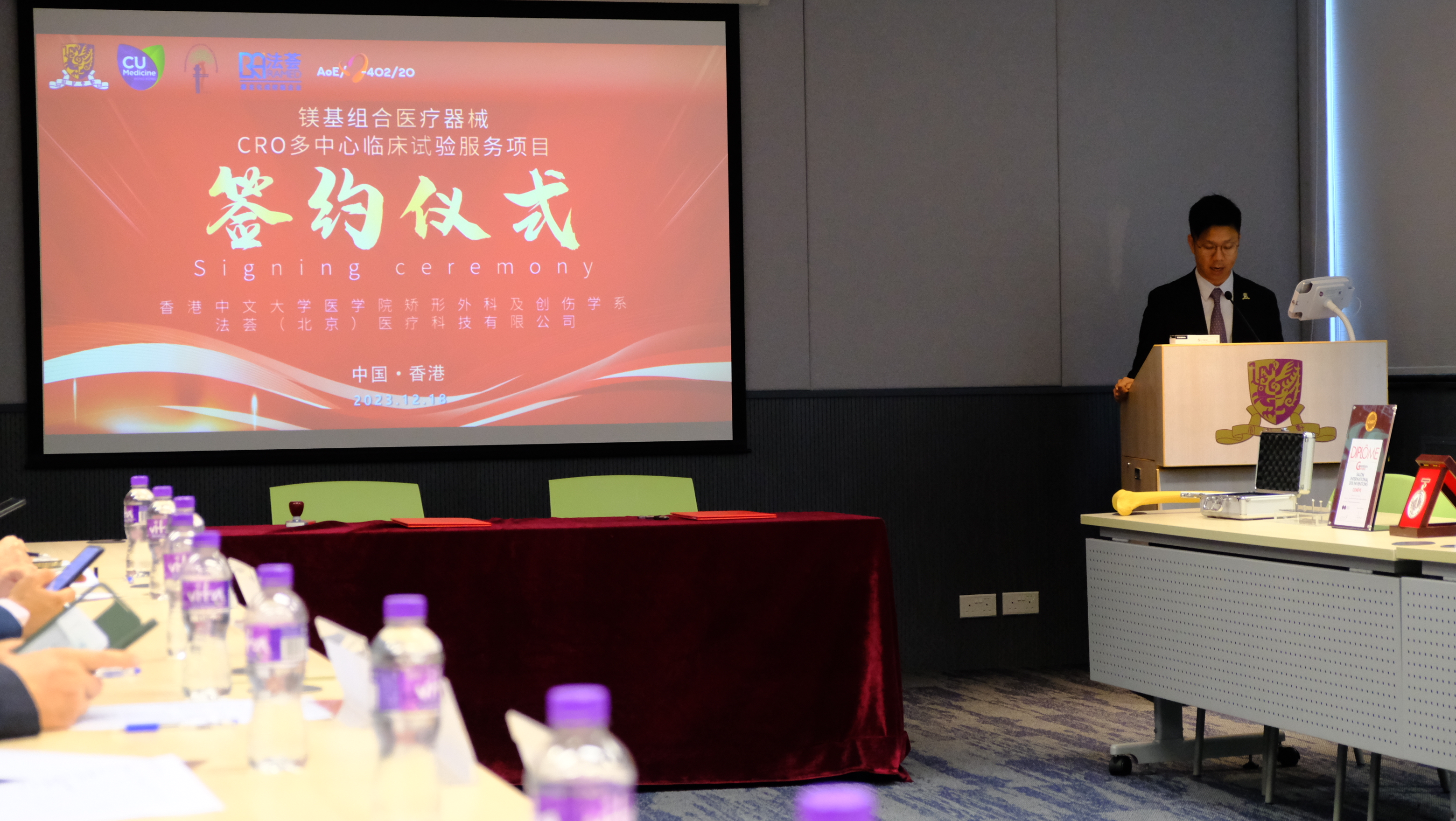 香港中文大學醫學院矯形外科及創傷學系與法薈(北京)醫療科技有限公司今日(12月18日)舉行鎂基組合醫療器械CRO多中心臨床試驗服務項目簽約儀式,建立長遠合作關係。香港中文大學研究及知識轉移服務處副處長林國然先生、知識轉移活動主管文志偉博士以及研究及知識轉移服務處職員獲邀前來出席。