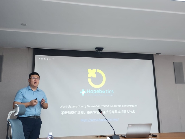 (圖七) 樂希機械人有限公司代表 – 史向前博士向上海楊浦區代表簡介公司 (Photo: ORKTS)