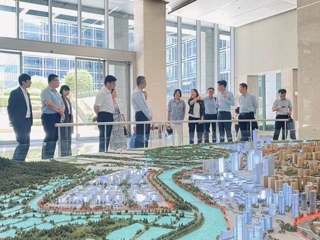 (圖三) 由香港中文大學深港創新研究院 (福田)代表 向上海楊浦區代表團進行河套片區沙盤解說 (Photo: ORKTS)