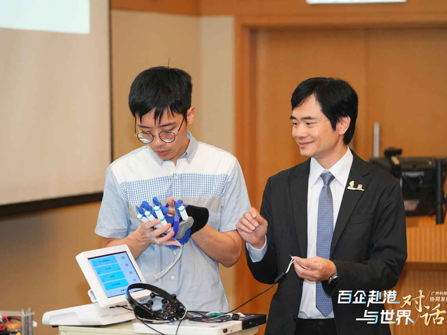 本次活動充分展現了大灣區科技創新發展的蓬勃態勢,也突出了香港在粵港科創合作的重要性。在成果展示環節中,樂希機械人有限公司(Hopebotics Limited)作為香港中文大學生物醫學工程系孵化的初創企業代表向50多家廣州企業參會代表展示自主研發的復康技術。
