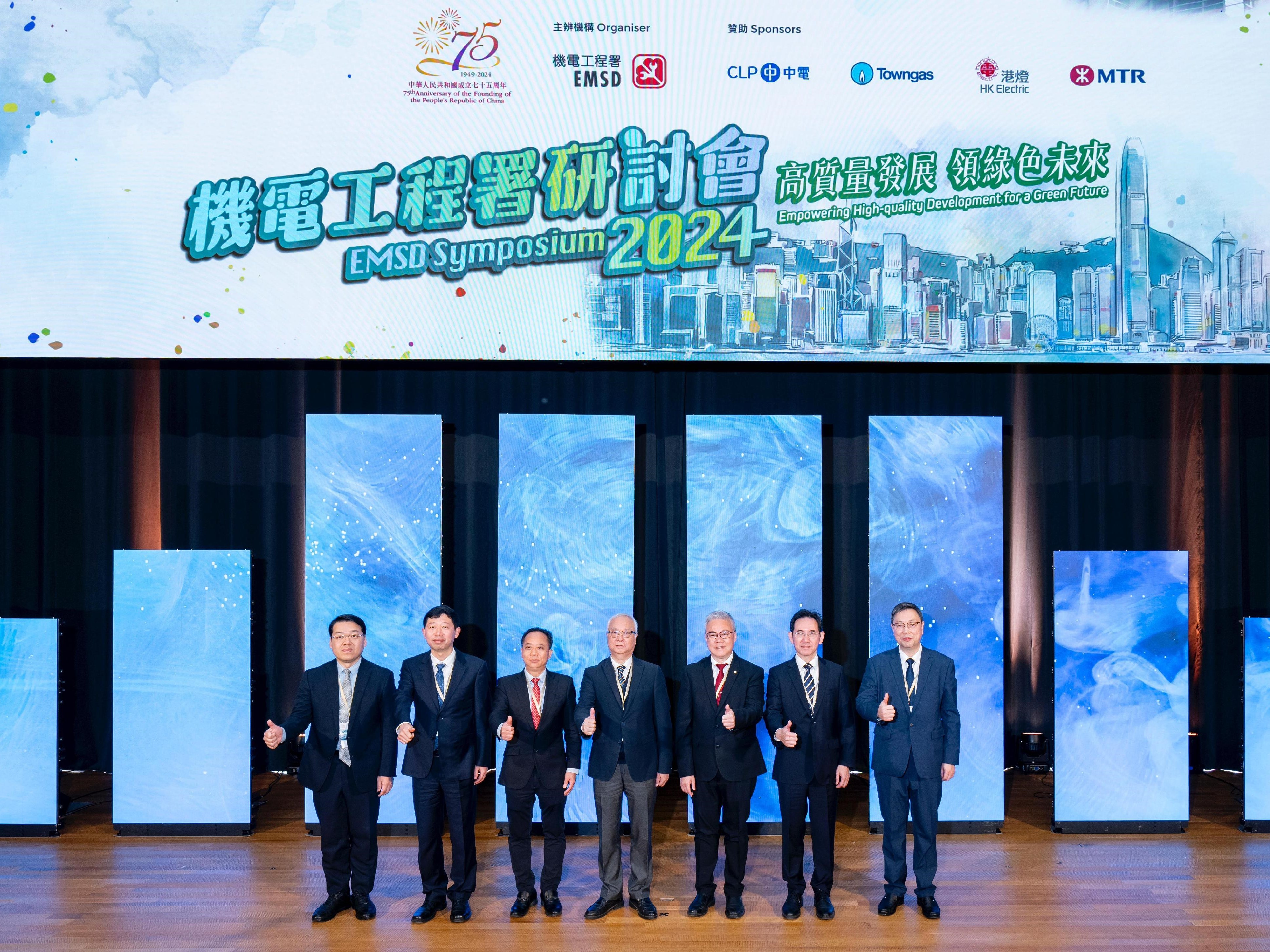 It is one of the events celebrating the 75th anniversary of the founding of the People's Republic of China. Over 400 representatives of local, Mainland and overseas government departments, public organisations, electrical and mechanical (E&M) and innovation and technology (I&T) sectors, professional institutions and academics attended the symposium and shared innovative solutions and research and development (R&D) achievements related to new energy, smart E&M, green transport and efficient construction.