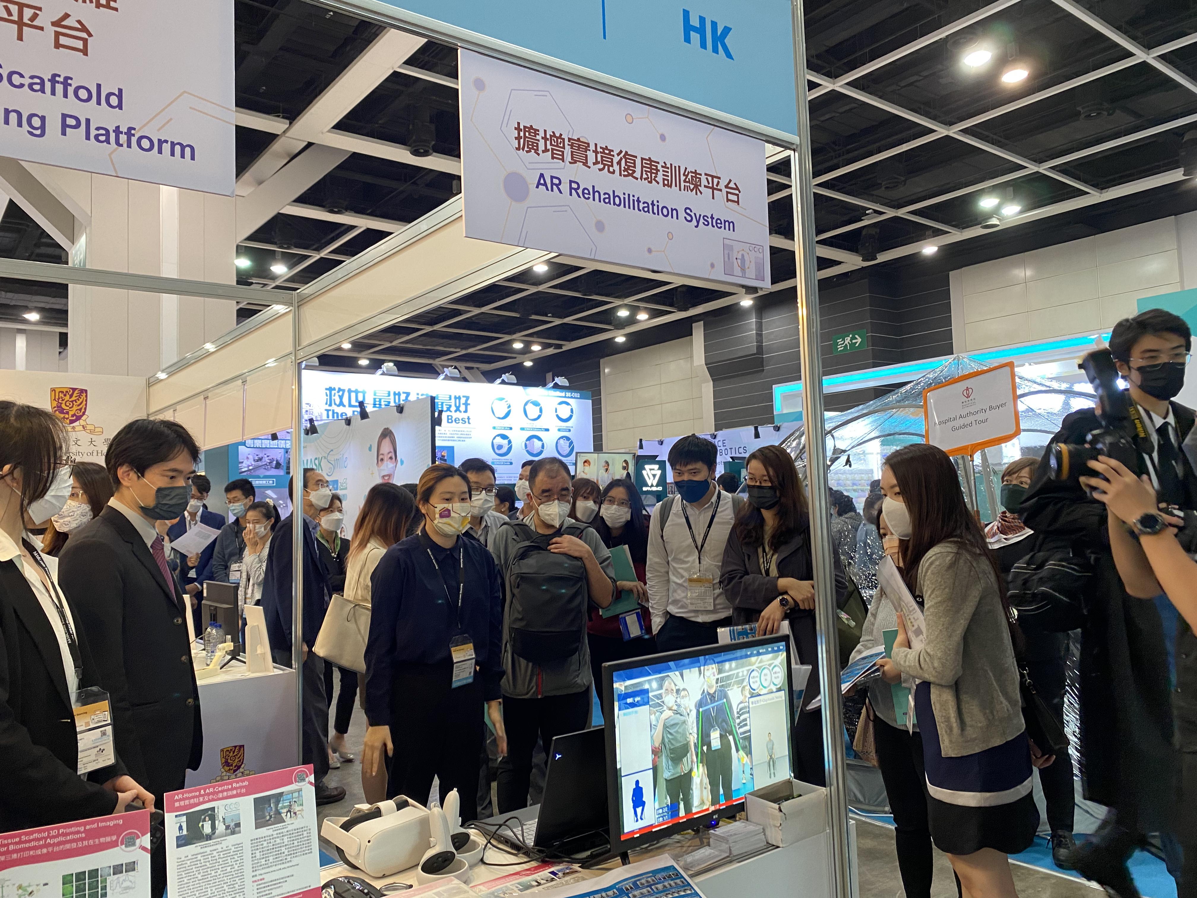 Representatives from CUHK Medical Centre, led by Prof. Fung Hong, visited our booth. (From right) Ms Jessie Lam (Chief Hospital Administration Officer, CUHK Medical Centre), Prof. Li Zheng, Dr. Jasperine Ho (Medical Director, Medical Innovation and Technology, CUHK Medical Centre), Prof. Fung Hong (CEO and Exceutive Director, CUHK Medical Centre), Prof. Raymond Tong and Prof, Zhou Renjie. (Photo: ORKTS)