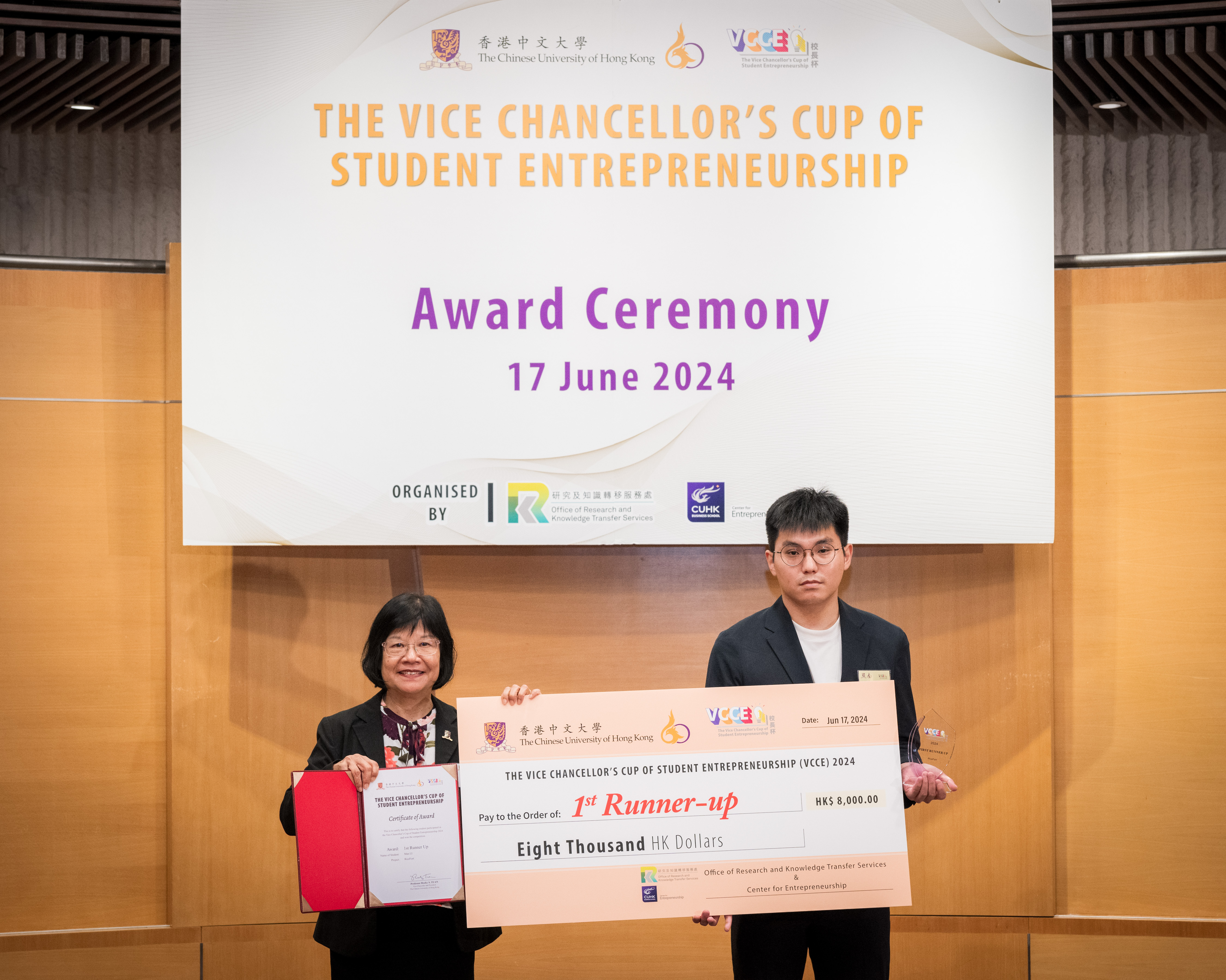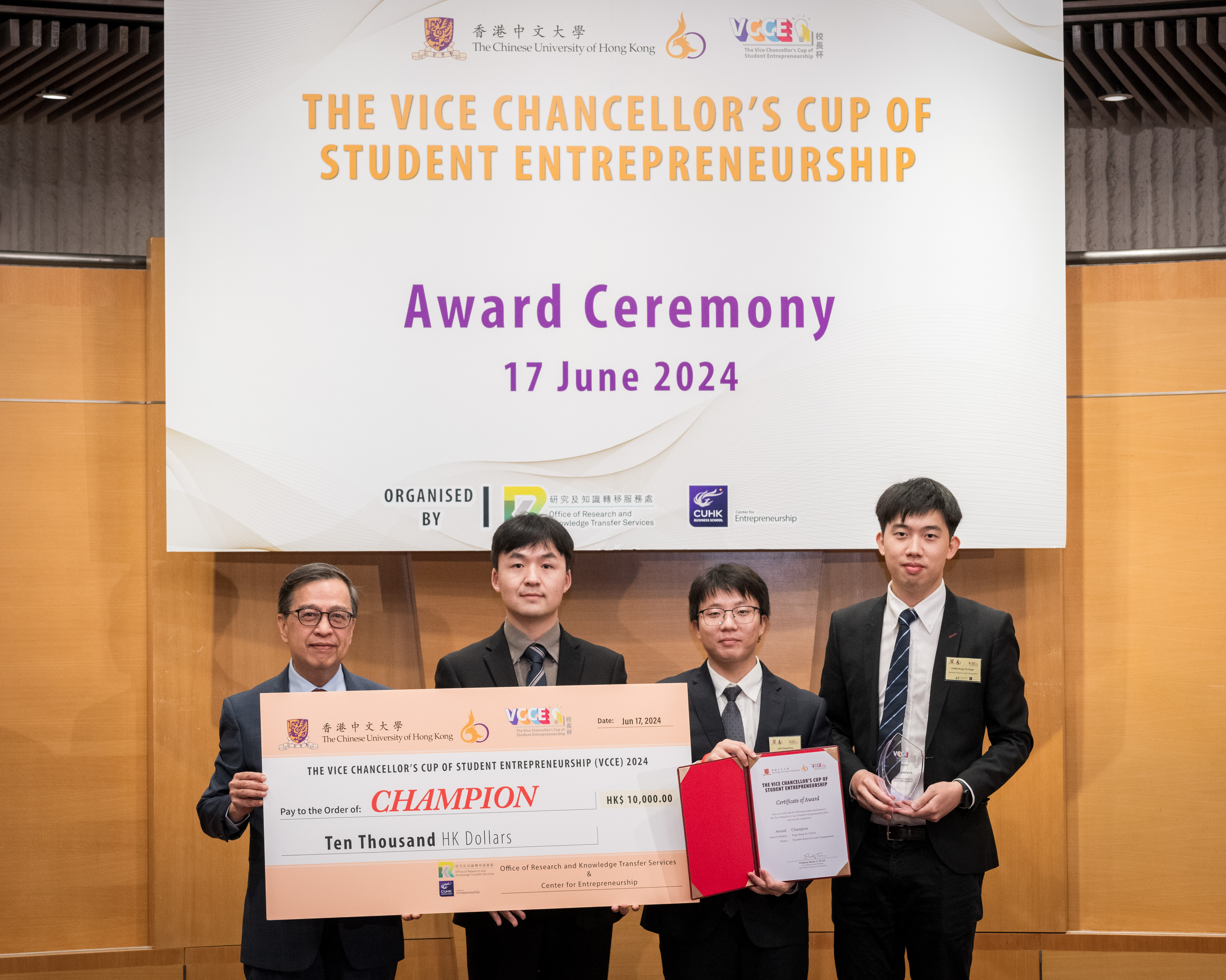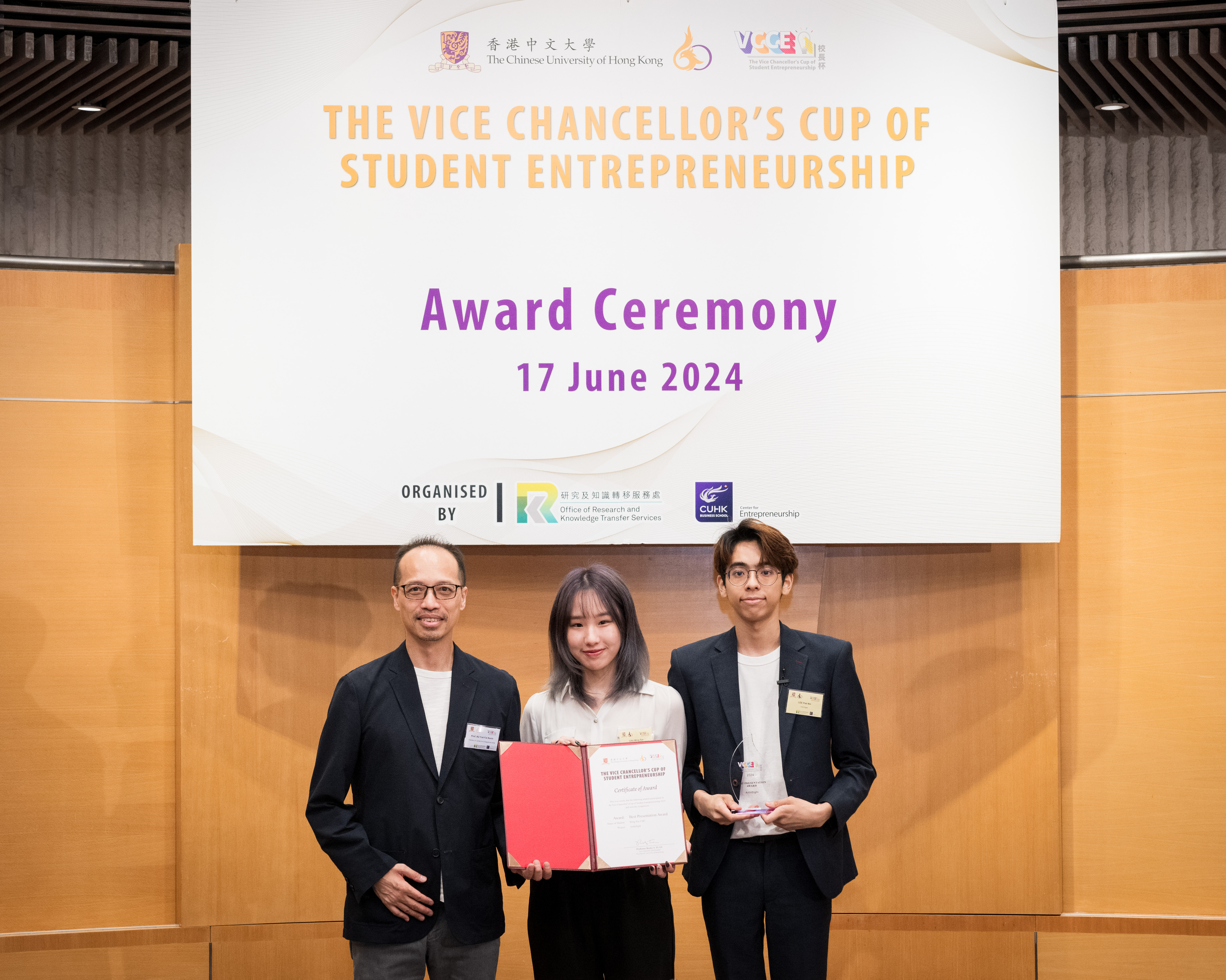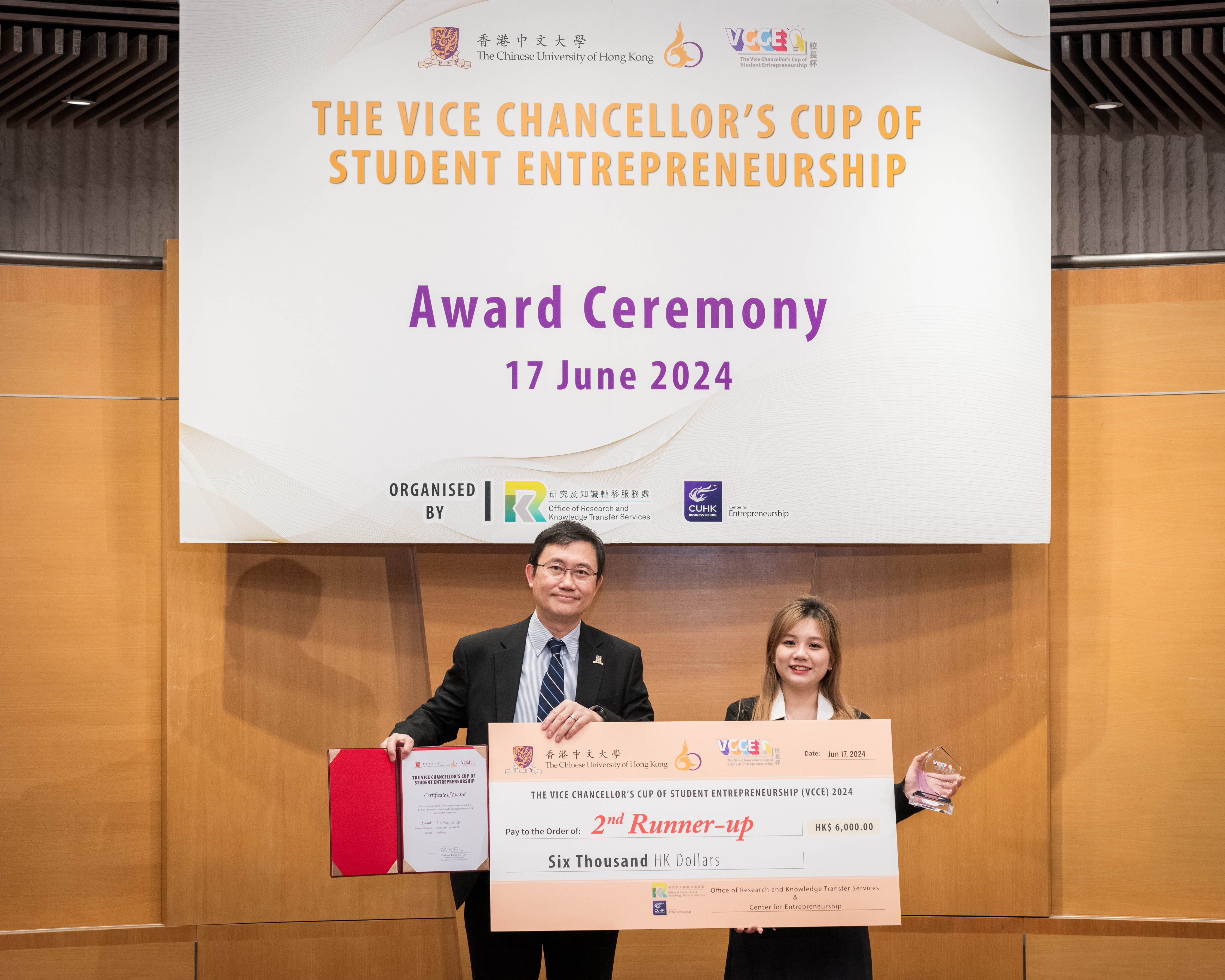 The Vice Chancellor's Cup of Student Entrepreneurship (VCCE) is an annual entrepreneurship competition co-organized by the Office of Research and Knowledge Transfer Services (ORKTS) and the Center for Entrepreneurship (CfE). This long-standing, campus-wide competition aims to provide a platform for students to develop and showcase their business ideas, and to nurture future entrepreneurs from the University’s network. This year, some 60 applications had been received, involving over 140 students from all eight faculties, which were of exceptional quality including innovative business ideas and non-profit projects.