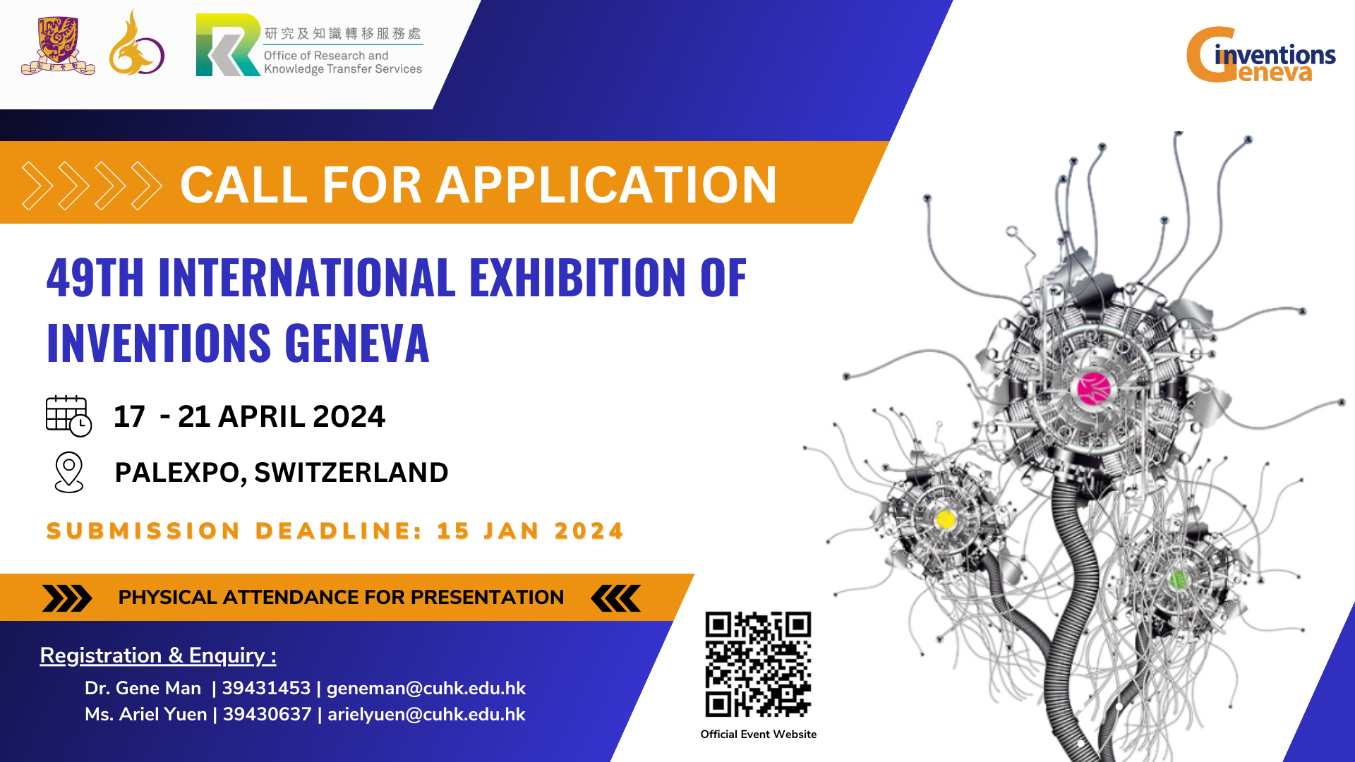 49th International Exhibition of Inventions of Geneva (Deadline: 15 Jan 2024)