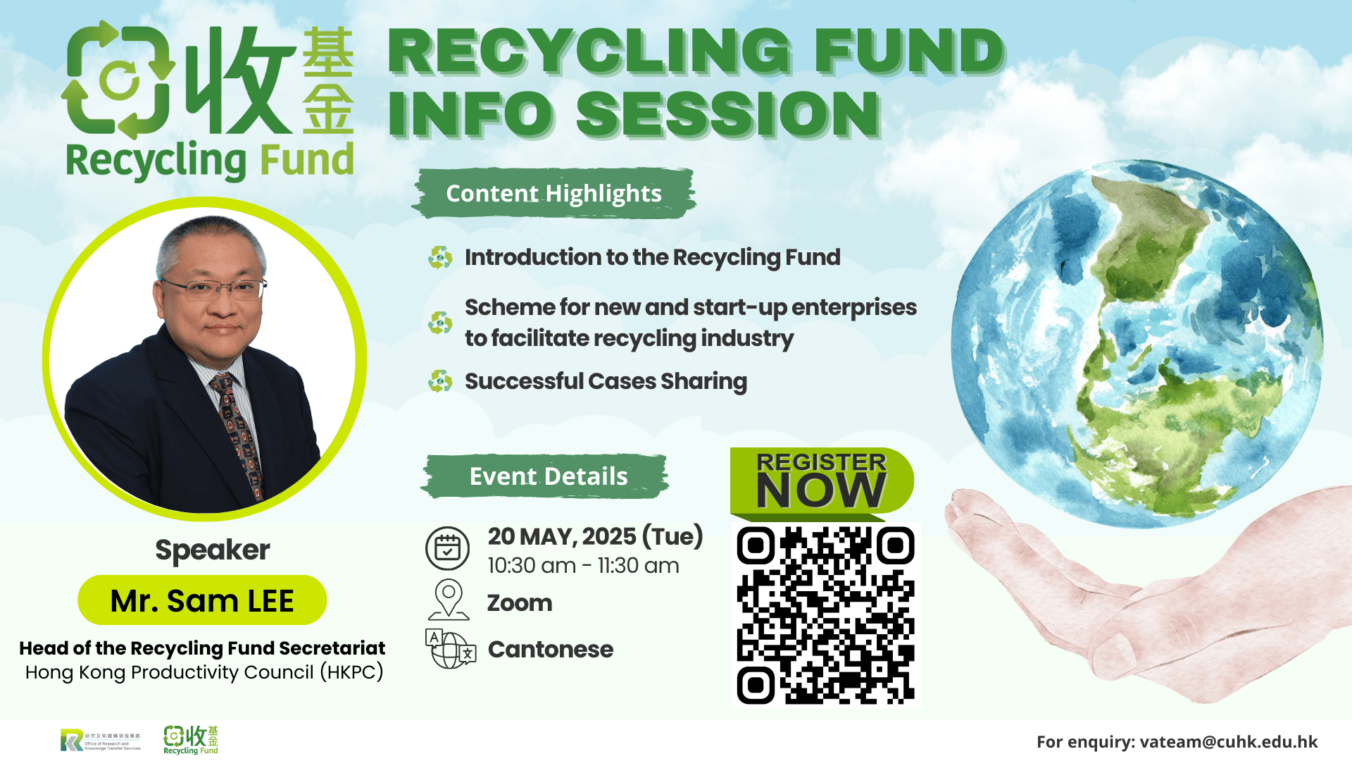 In this session, Sam will share the programme details and assessment criteria of Recycling Fund, with a special focus on the scheme for new start-up aimed at improving recycling through innovative means, we will also present some examples of successful cases to provide practical insights.
