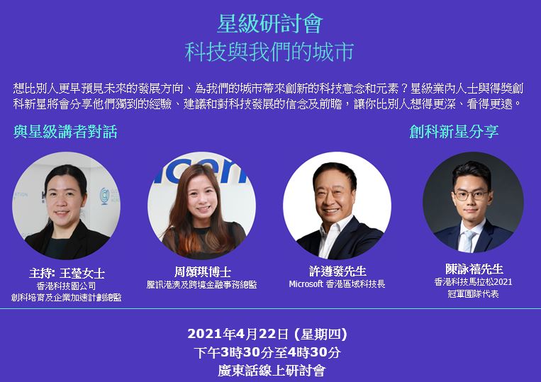 想比別人更早預見未來的發展方向、為我們的城市帶來創新的科技意念和元素?星級業內人士與得獎創科新星將會分享他們獨到的經驗、建議和對科技發展的信念及前瞻,讓你比別人想得更深、看得更遠。
