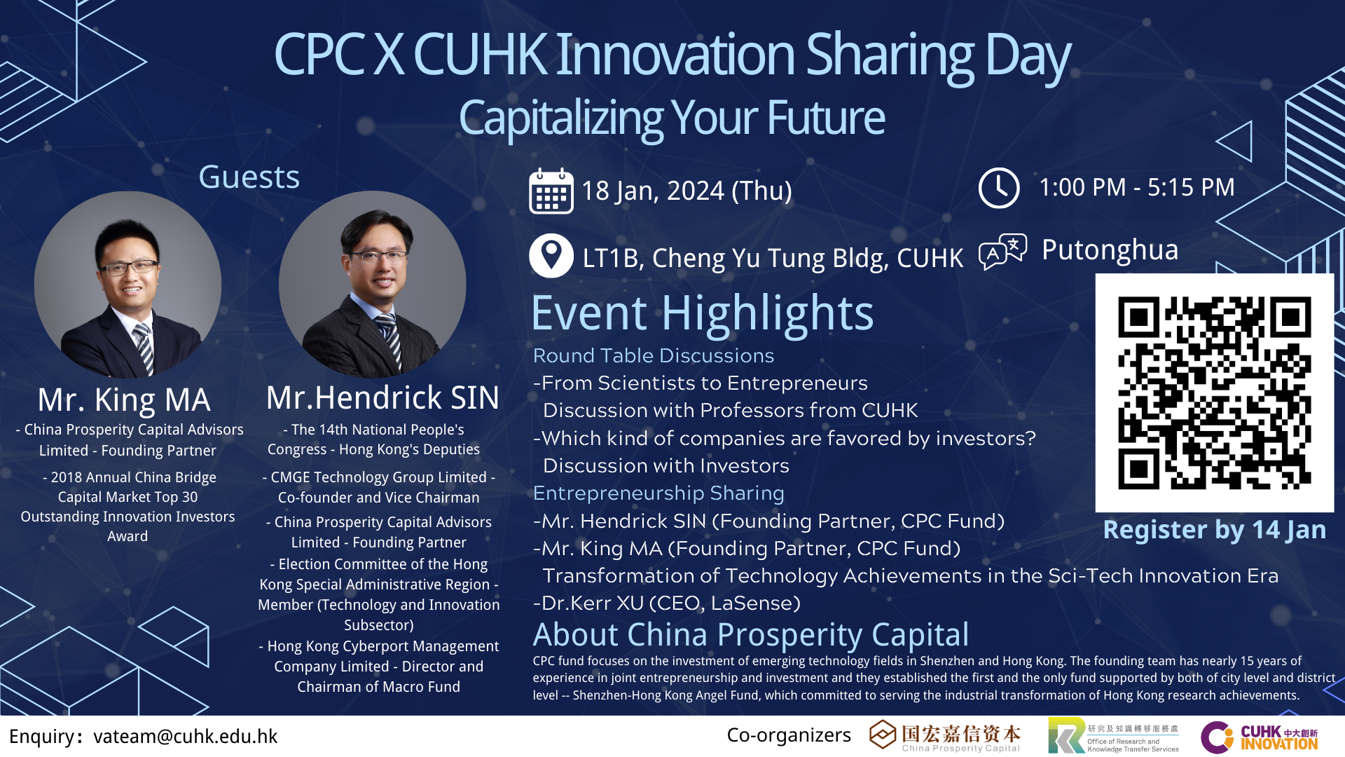 國宏嘉信資本 X 香港中文大學 創投互動日 | CPC X CUHK Innovation Sharing Day