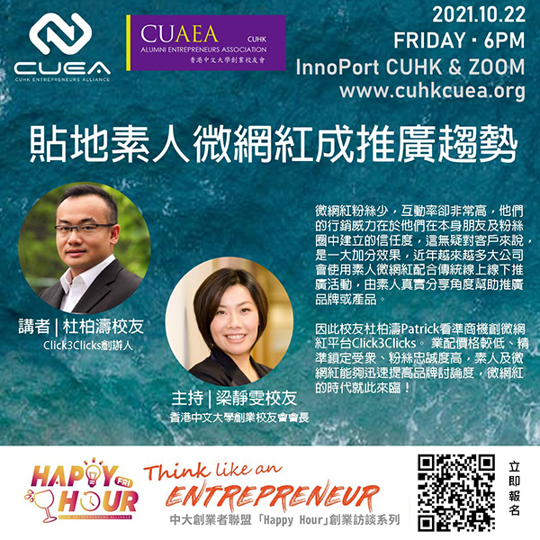 中大創業者聯盟「Happy Hour」:貼地素人微網紅成推廣趨勢