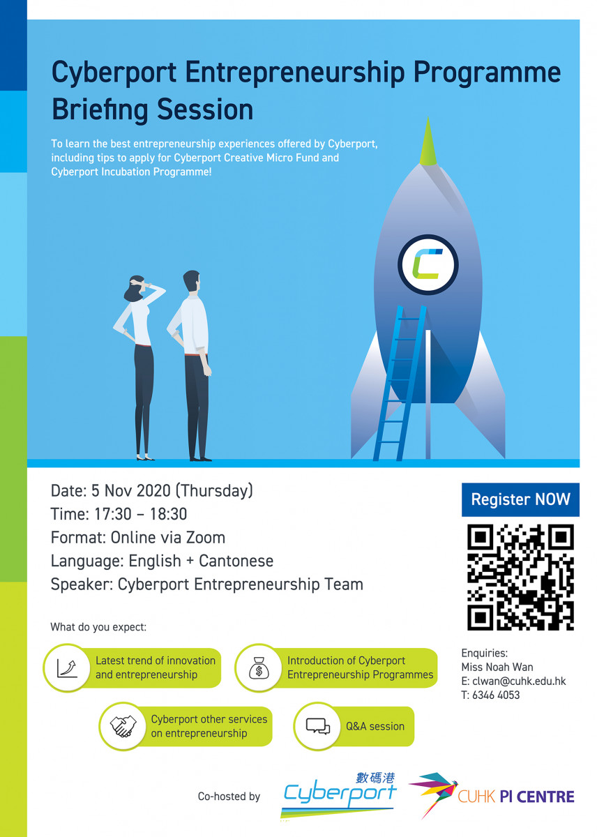 – Introduction and application tips of Cyberport Entrepreneurship Programmes*;