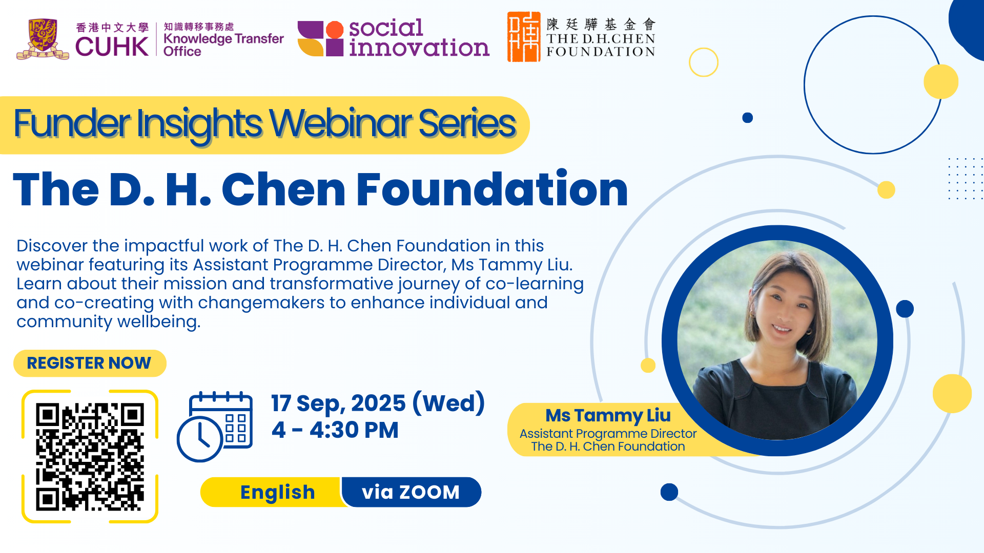 Join us for the Funder Insights Webinar Series, where CUHK academics can explore the impact philosophies and funding approaches of leading foundations to drive systemic social change. you will gain invaluable tips on securing funding for your impact projects, tackling critical social issues through your research outcomes with funders.