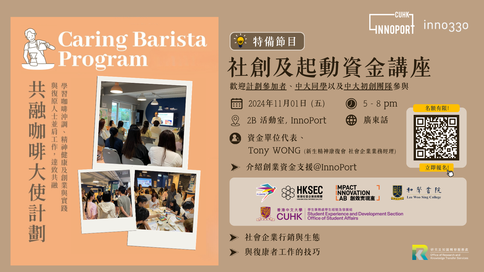 InnoPort x inno330: Caring Barista Program – 社創及起動資金講座