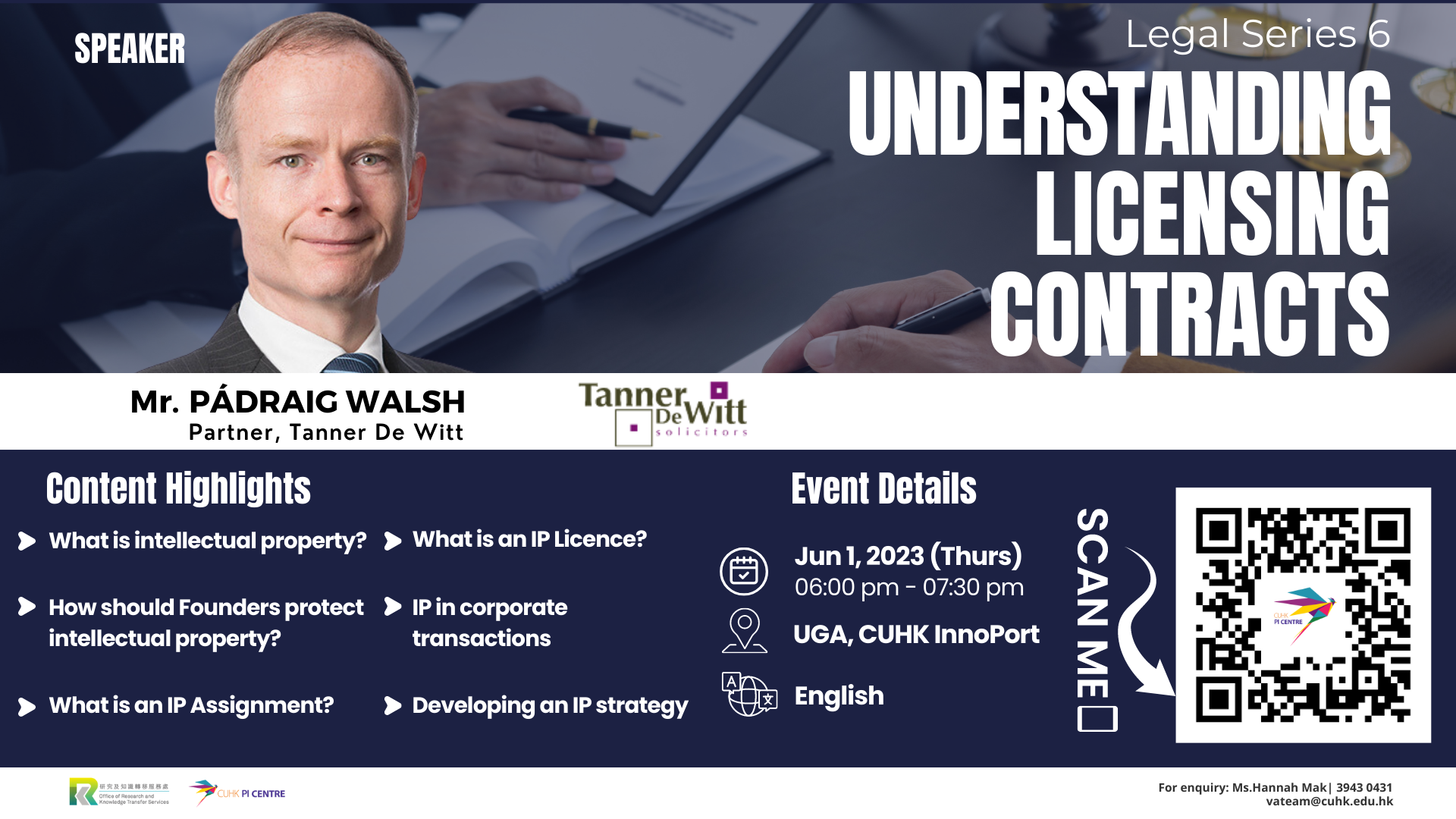 Pádraig is a member of the Fintech Association of Hong Kong, ITechLaw, and PrivacyRules. He provides legal training to clients and incubation or accelerator programmes, and is also a regular speaker and writer on trending issues in the tech scene.