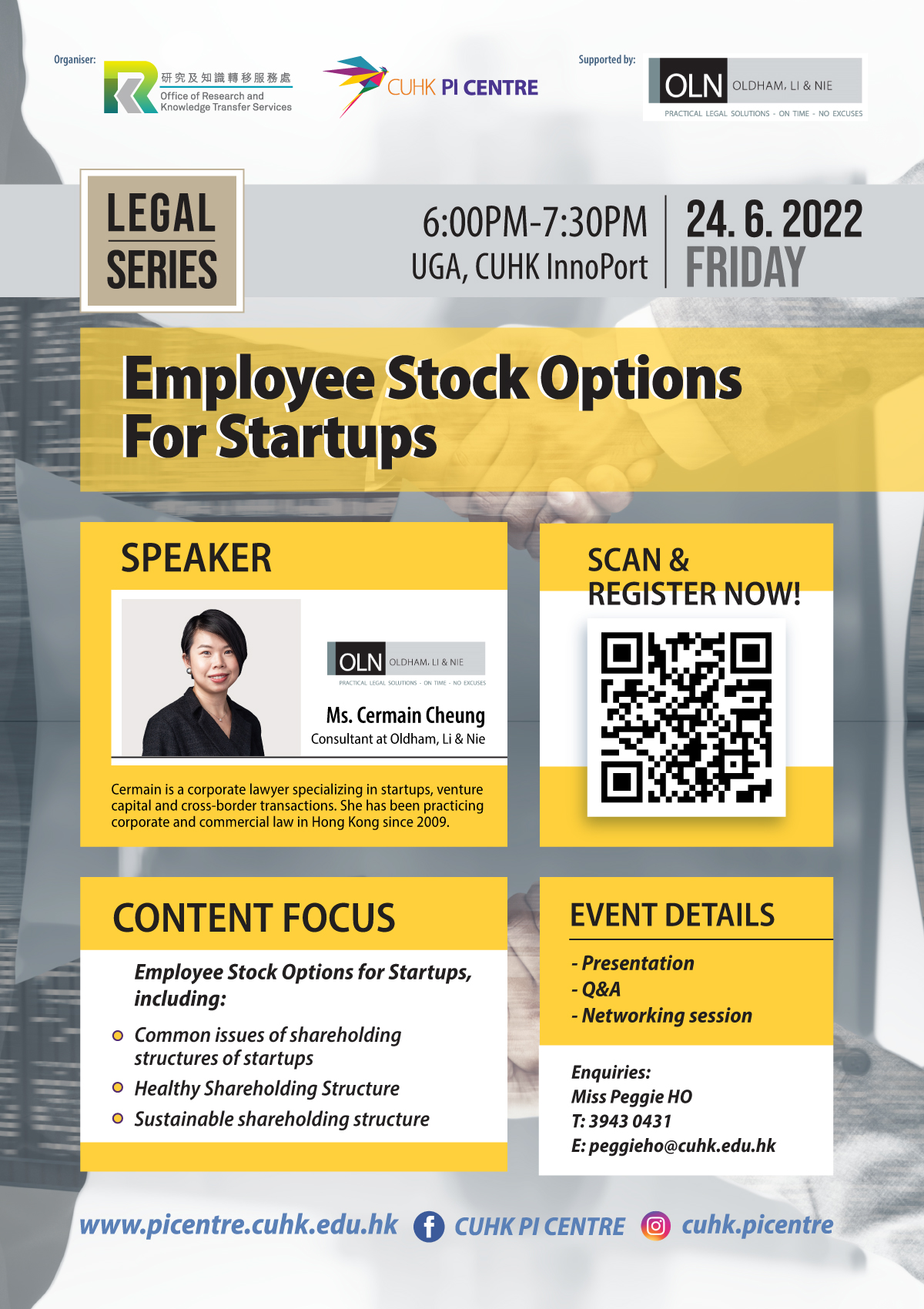 For inquiries, please contact Miss Peggie Ho at 3943 0431/