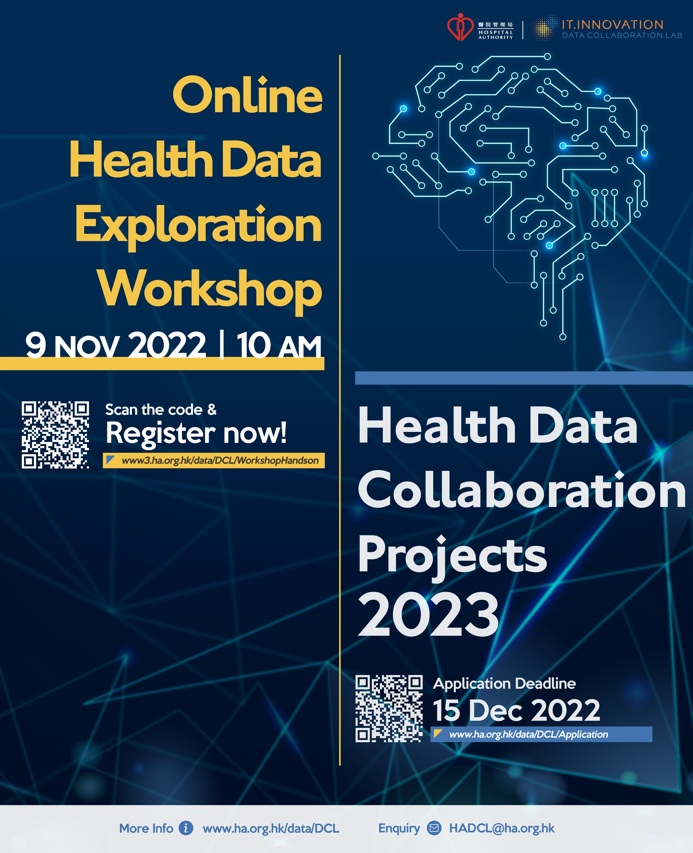 Hospital Authority Data Collaboration Lab (HADCL) is inviting enrolment for Online Health Data Exploration Workshop and applications for health big data collaboration projects for 2023.
