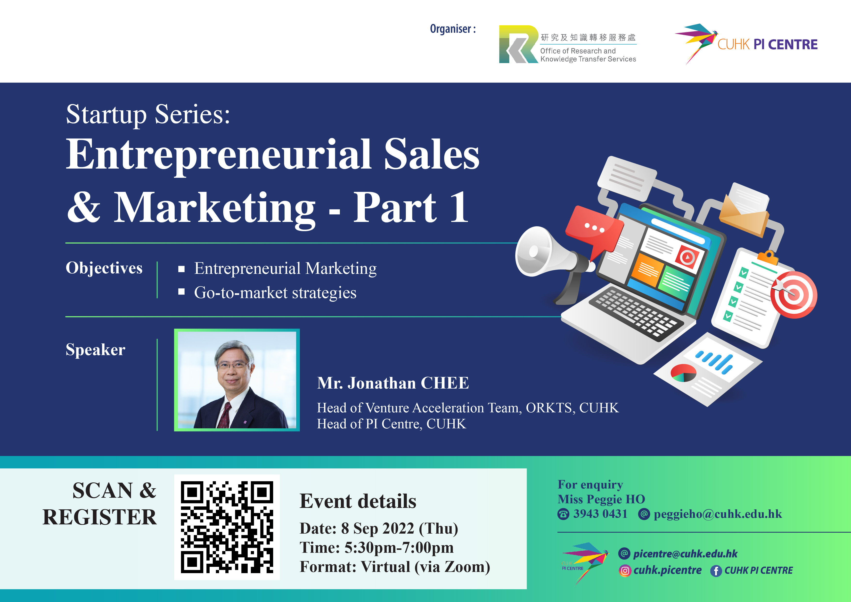 Speaker: Mr. Jonathan CHEE, Head of PI Centre & Venture Acceleration Team, ORKTS, CUHK
